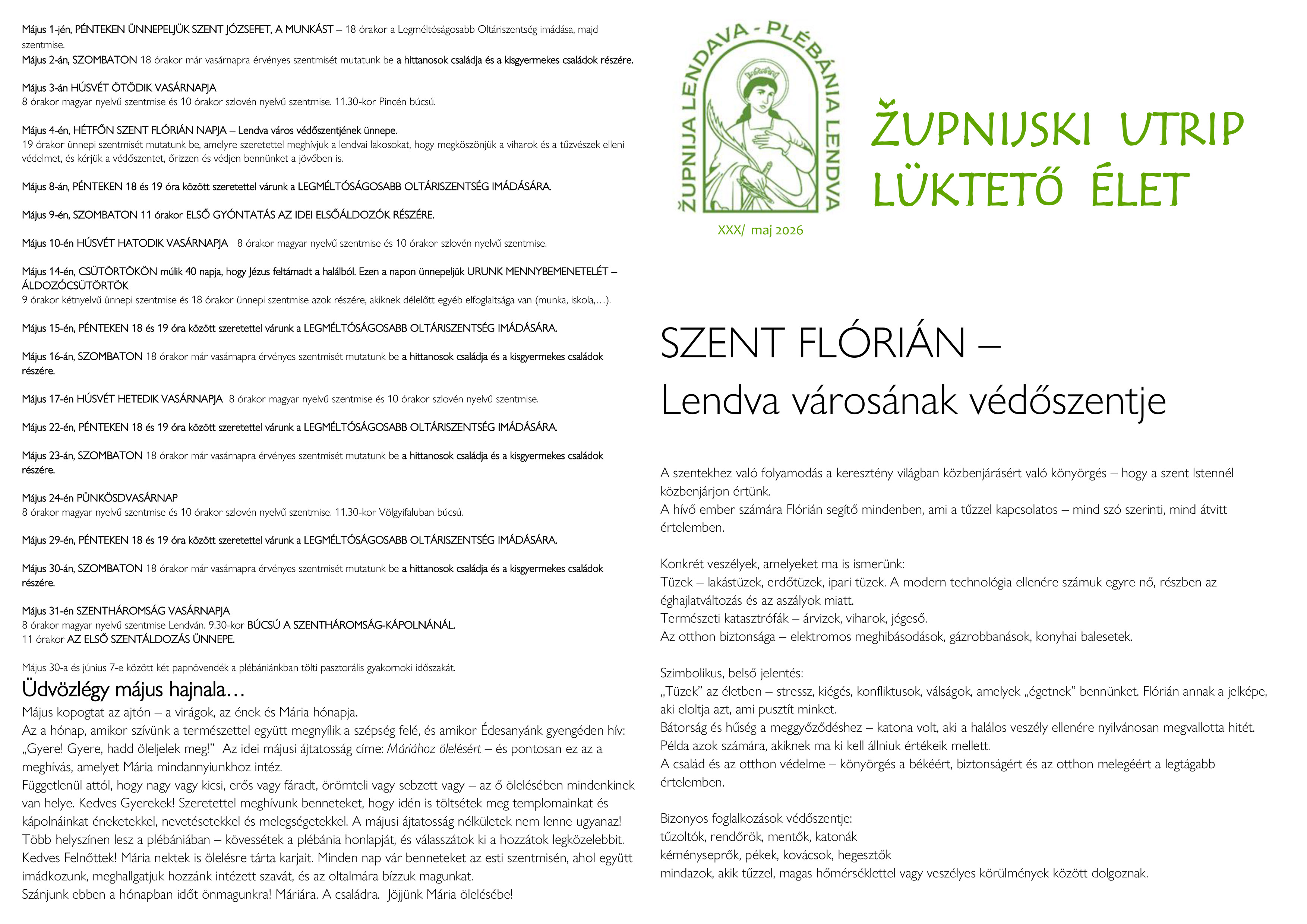 Župnijski utrip/Lüktető élet – maj 2026